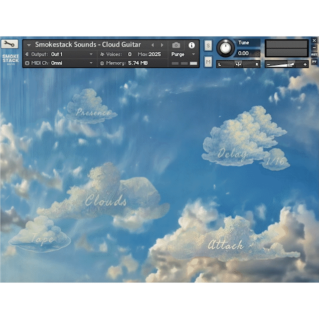 In this quirky, intuitive and fun interface you can shape your sound by dragging the clouds or assigning them to your midi CC controls to record the performances in real time.